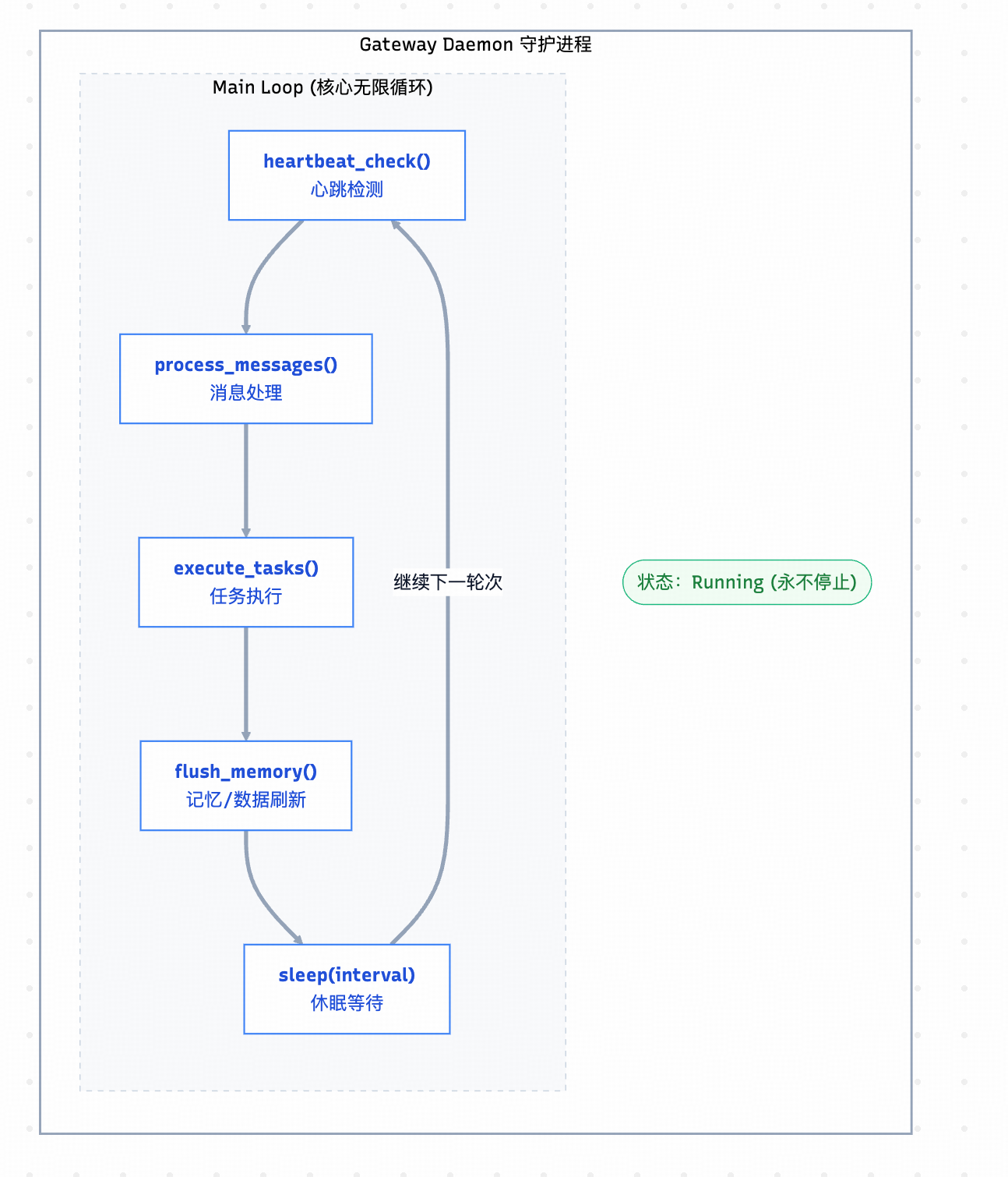 技术实现:Gateway守护进程 + 心跳巡查机制