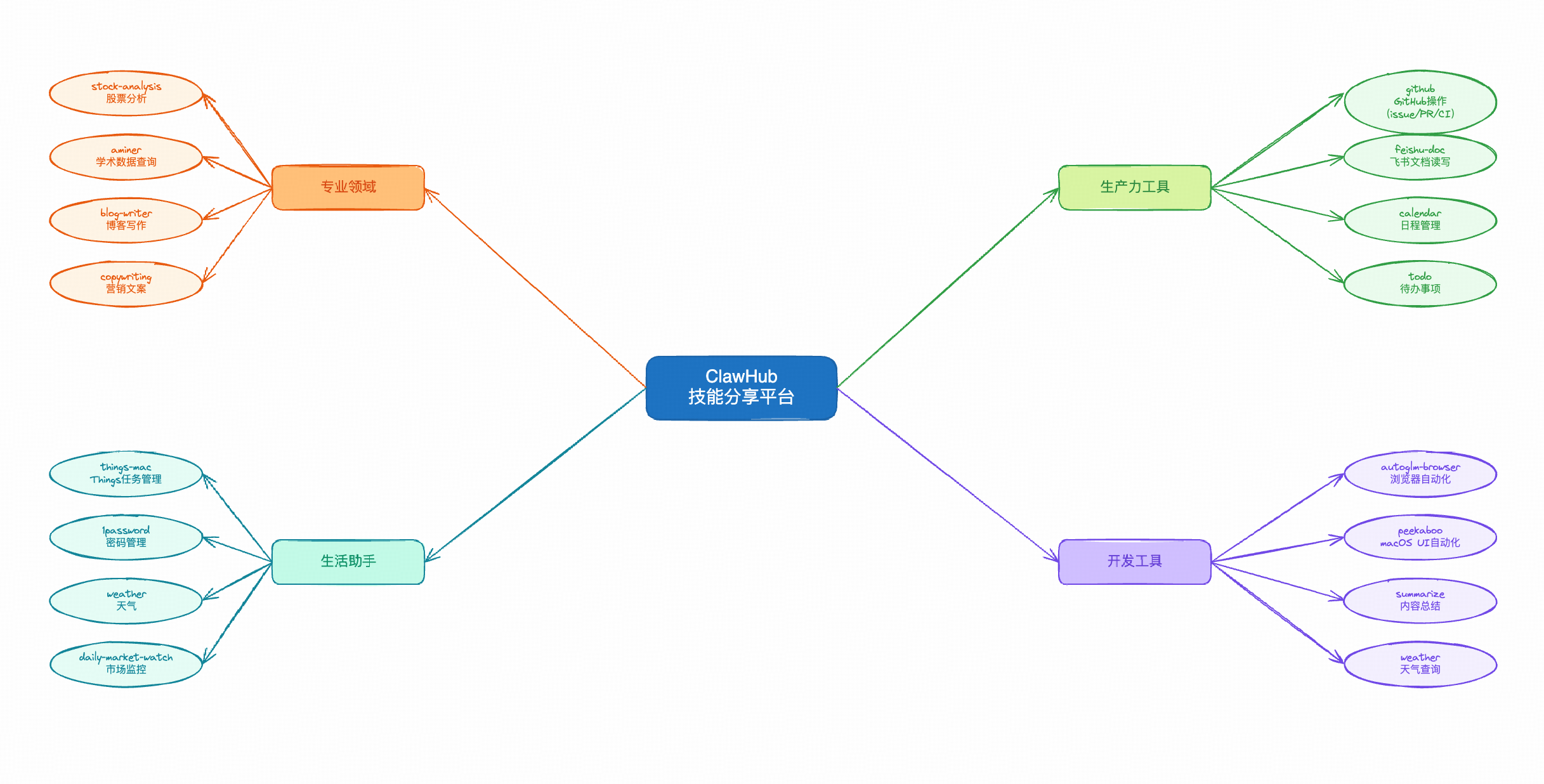 | 技能市场 | ClawHub | https://clawhub.com | Skills技能分享平台 |
