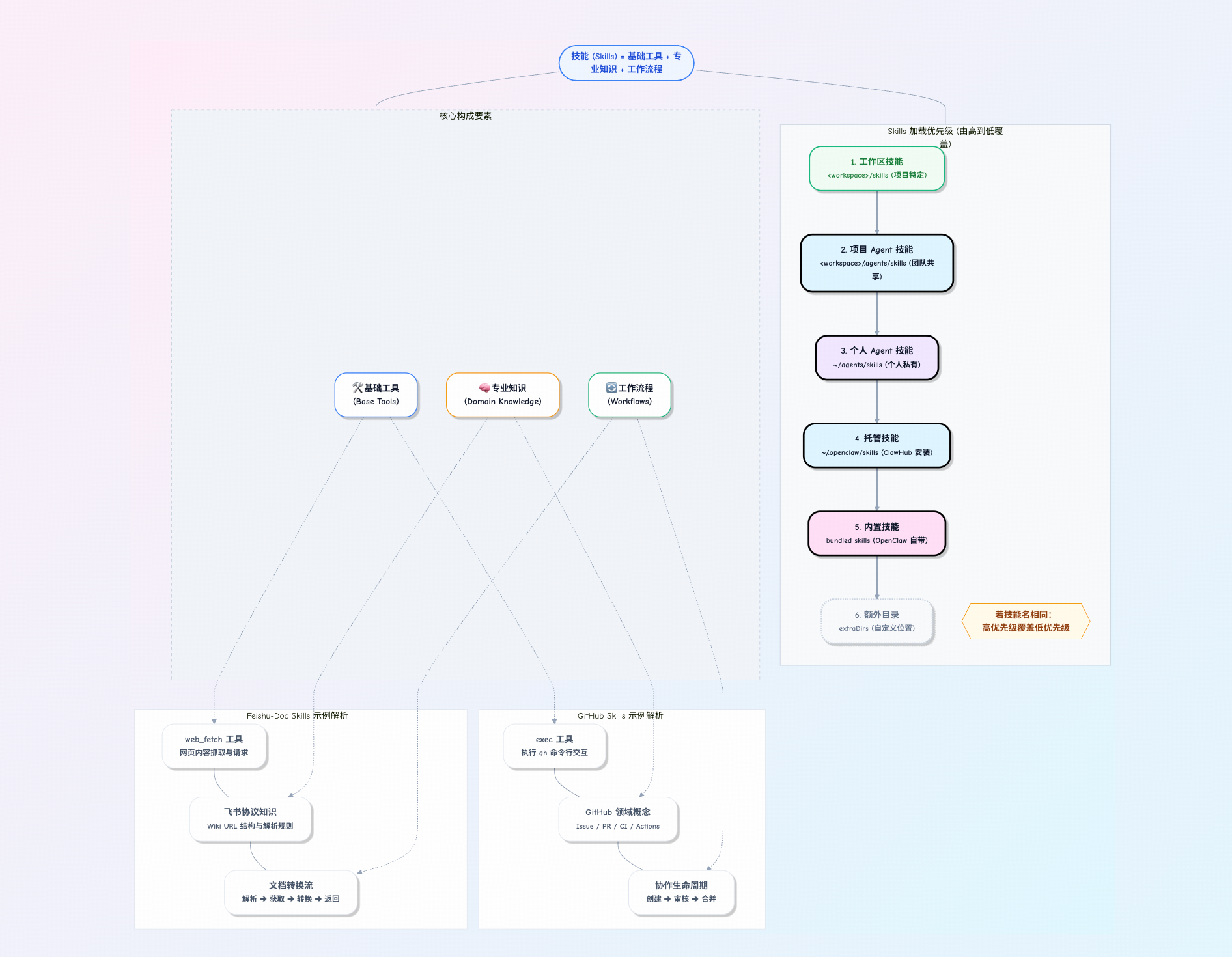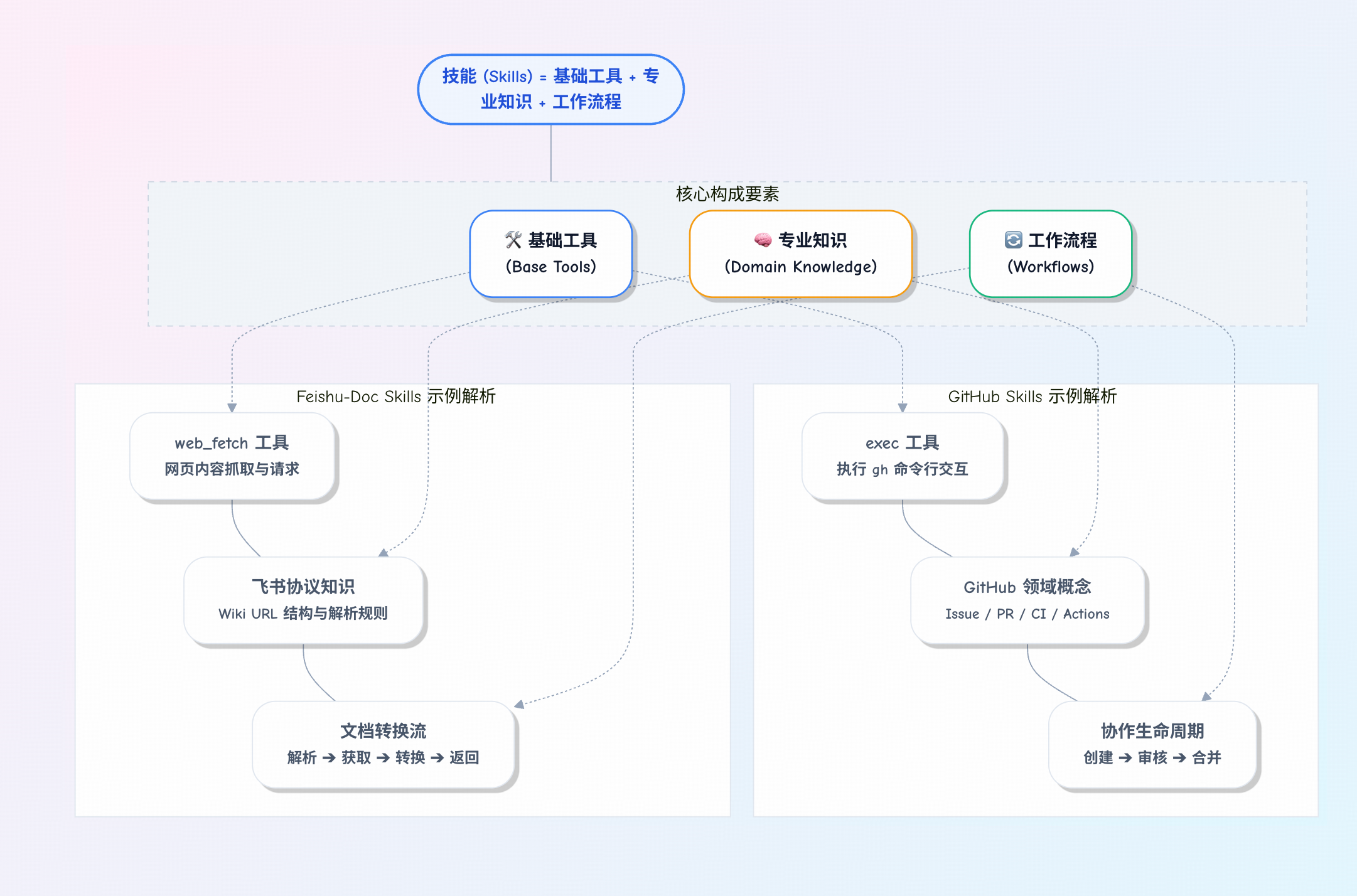 read是基础工具github是Skillsgithub=exec工具 + GitHub专业知识 + Issue/PR工作流程