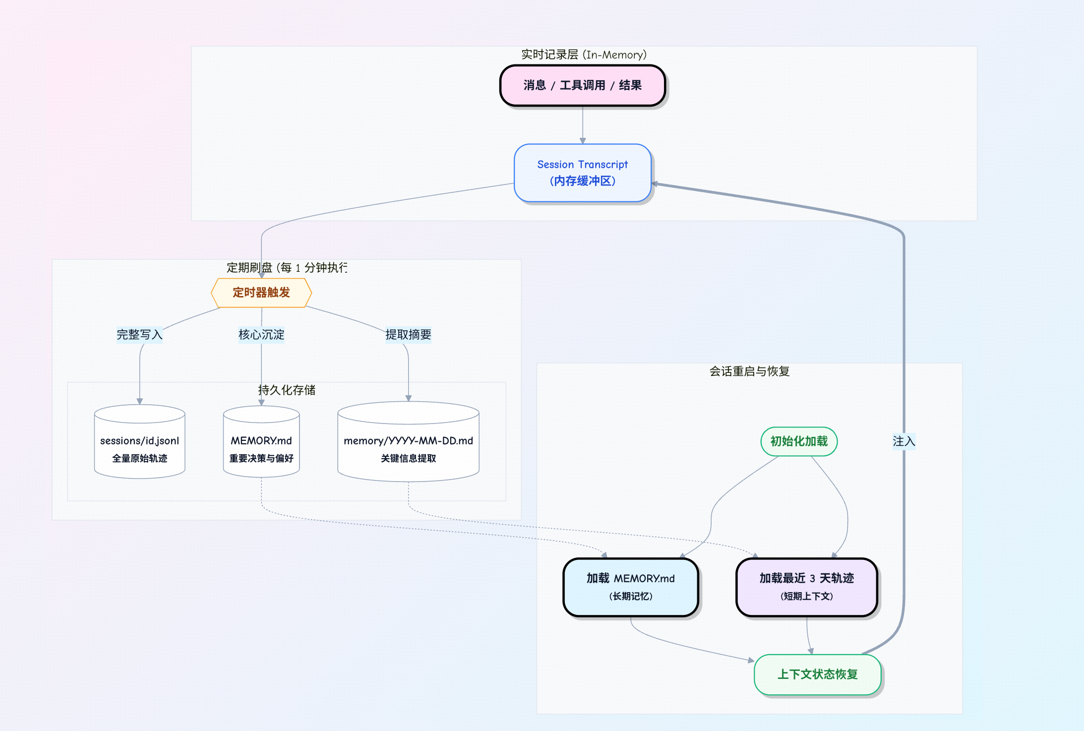 | 无长期记忆 | 每次对话都重新开始 | 文件存储记忆,跨会话持久 | 智能、连贯 |