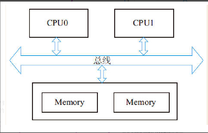 对于X86架构的计算机,内存控制器还没有整合进CPU,所有对内存的访问都需要通过北桥芯片来完成。X86系统中的所有内存都可以通过CPU进行同等访问。任何CPU访问任何内存的速度是一致的,不必考虑不同内存地址之间的差异,这称为“统一内存访问”(Uniform Memory Access,UMA)如下图所示:
